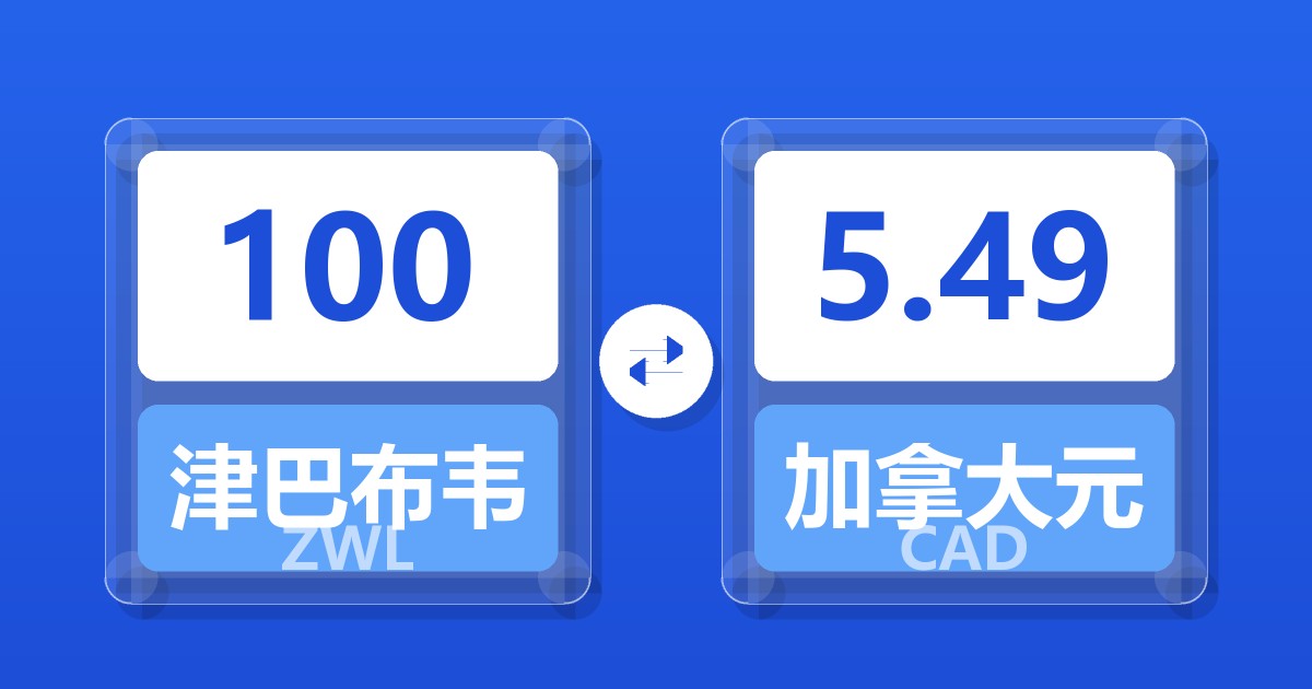 100 津巴布韦元 (ZWL) = 5.49 加拿大元 (CAD)