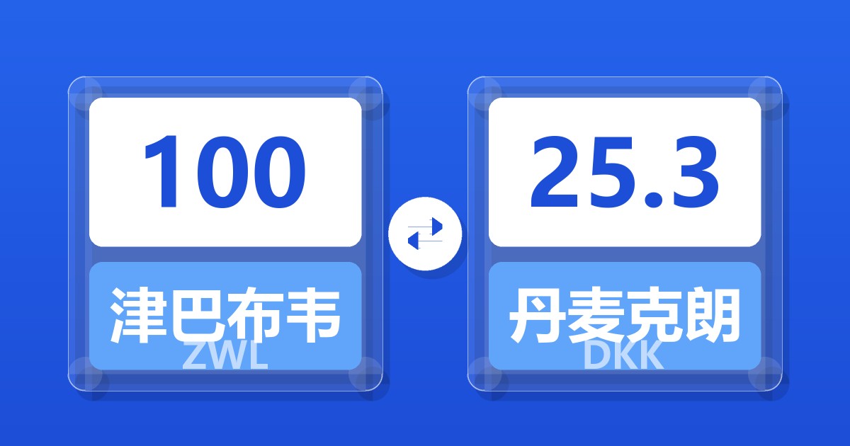 100 津巴布韦元 (ZWL) = 25.31 丹麦克朗 (DKK)