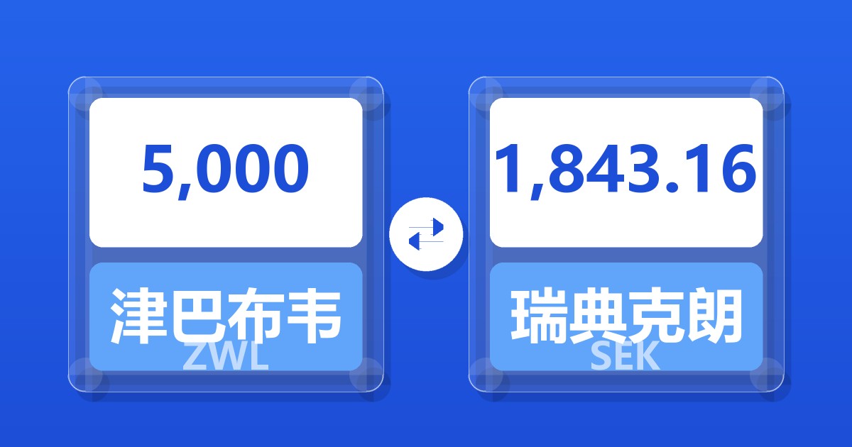 5,000 津巴布韦元 (ZWL) = 1,843.16 瑞典克朗 (SEK)