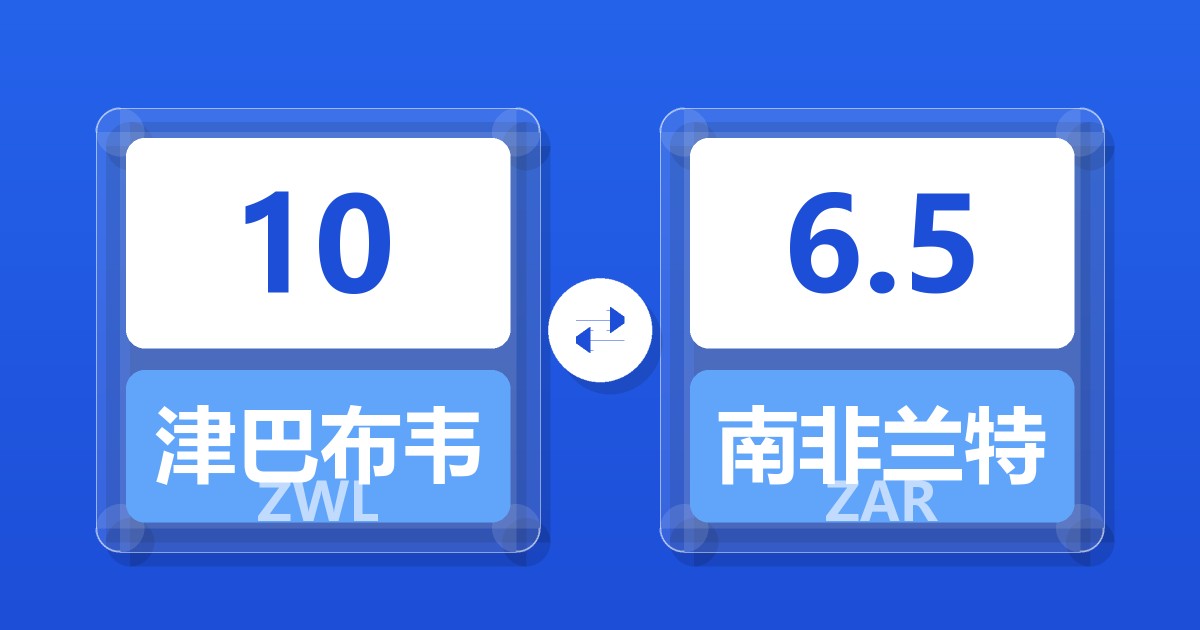10 津巴布韦元 (ZWL) = 6.50 南非兰特 (ZAR)