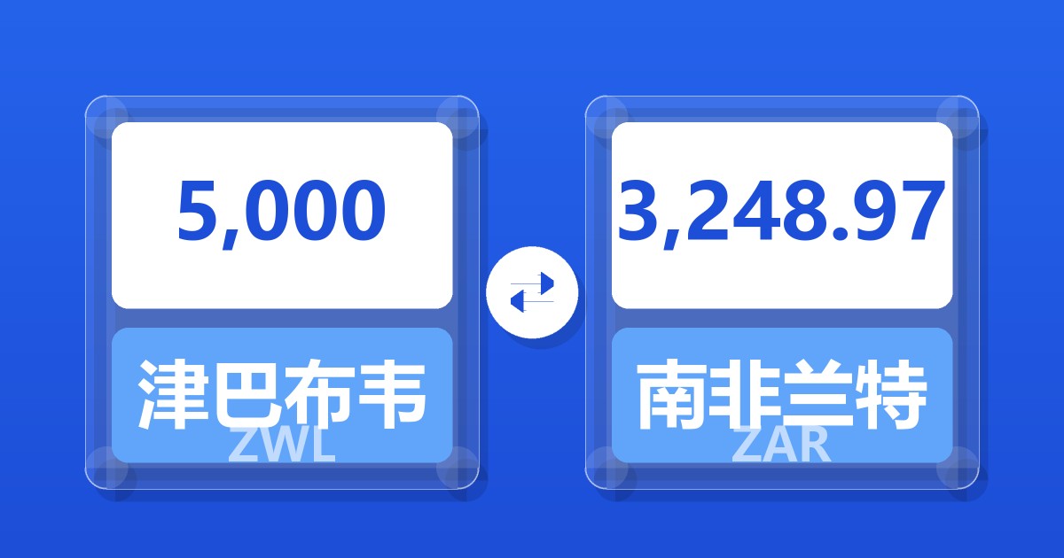 5,000 津巴布韦元 (ZWL) = 3,248.97 南非兰特 (ZAR)