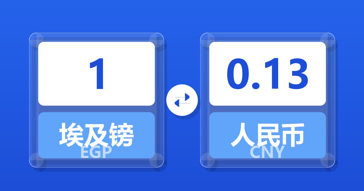 1 埃及镑 (EGP) = 0.13 人民币 (CNY)