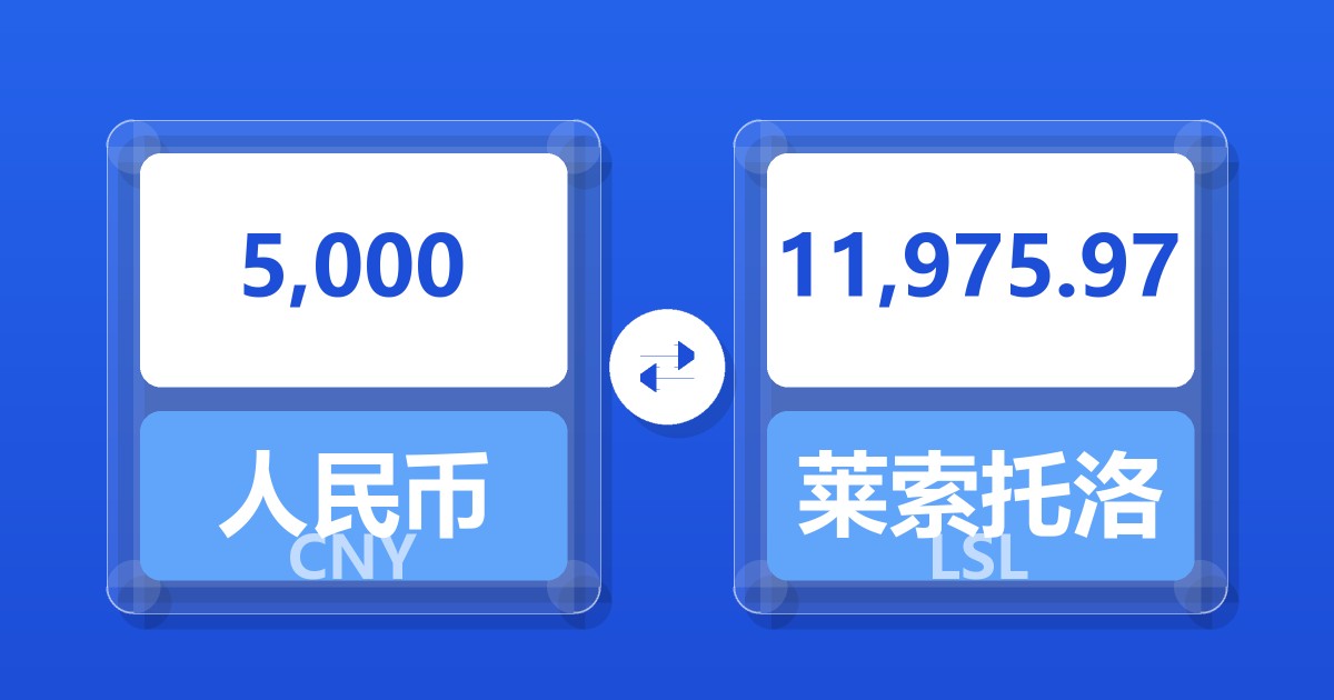 5,000 人民币 (CNY) = 11,980.32 莱索托洛蒂 (LSL)